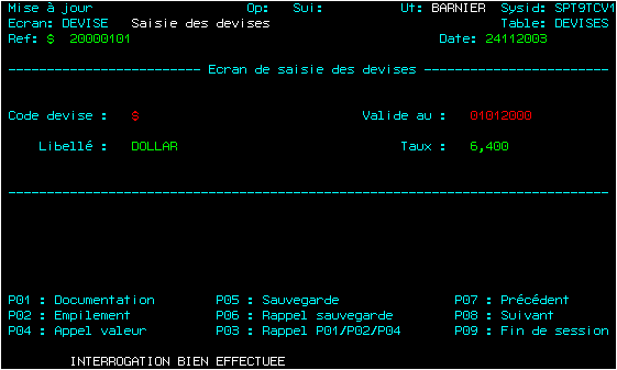 Ecran personnalisé de mise à jour de la table DEVISE